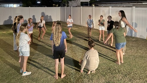 Each week, they open in prayer, eat ono snacks, then spend some time playing games in the grass. After that, they transition back inside for the Bible lesson, and they finish the evening with prayer request groups and prayer over the girls.